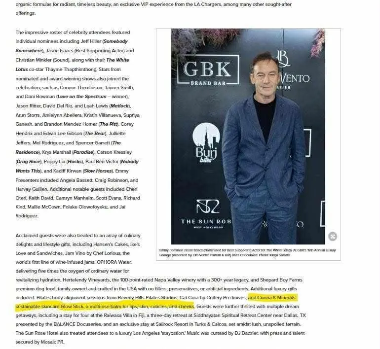 From Australia to Hollywood, the Eco Luxe Glow Stick was proudly featured in the Emmy’s Luxury Lounge where international celebrities, stylists, and beauty editors fell in love with its effortless glow and sustainable design.